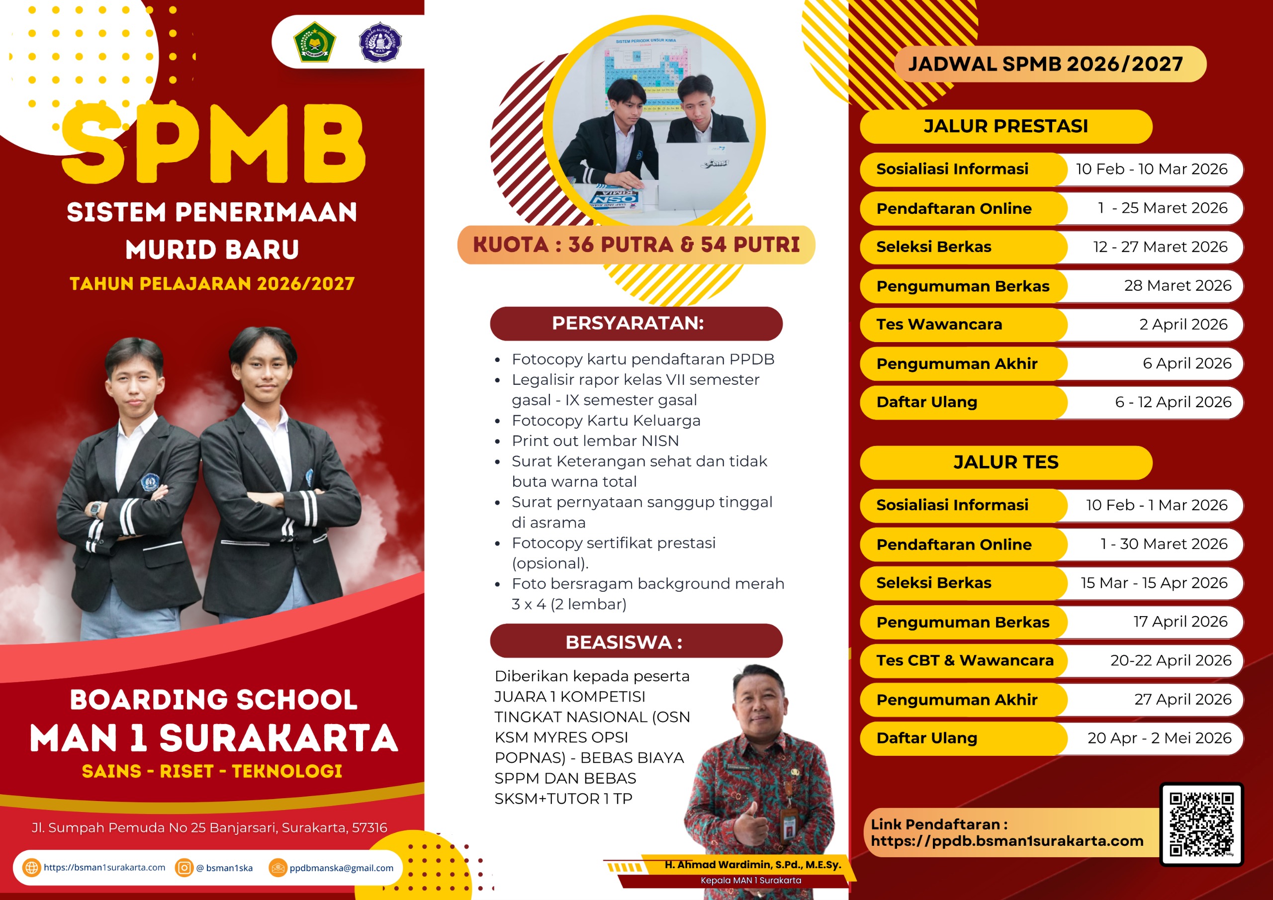 Informasi terbaru dapat diakses melalui website resmi, akun Instagram, dan Facebook MAN 1 Surakarta. Anda juga dapat menghubungi kontak yang tertera di website.